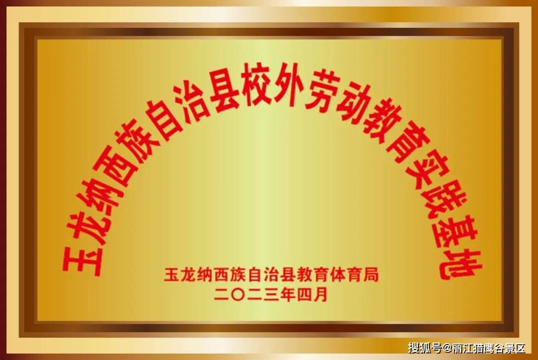 近日,猎鹰谷景区研学实践教育基地喜讯连连、捷报频传,分别被丽江市教育体育局、玉龙县教育体育局授予“丽江市校外劳动教育实践基地”“玉龙纳西族自治县校外劳动教育实践基地”称号。