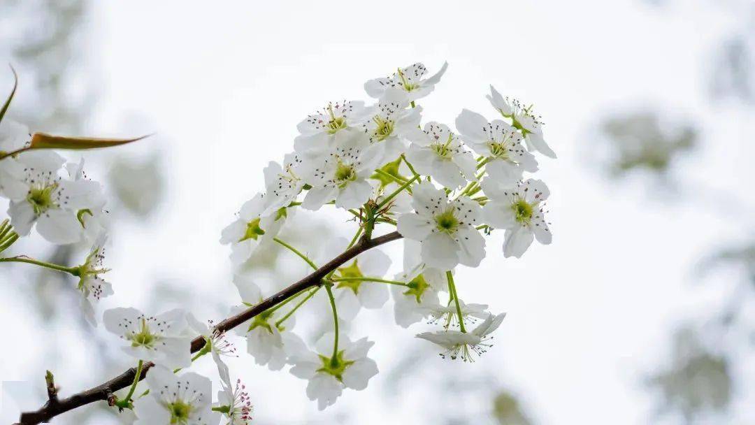 梨花花朵成簇,叶青色,花朵与新叶同生,花簇像白色的花椰菜。