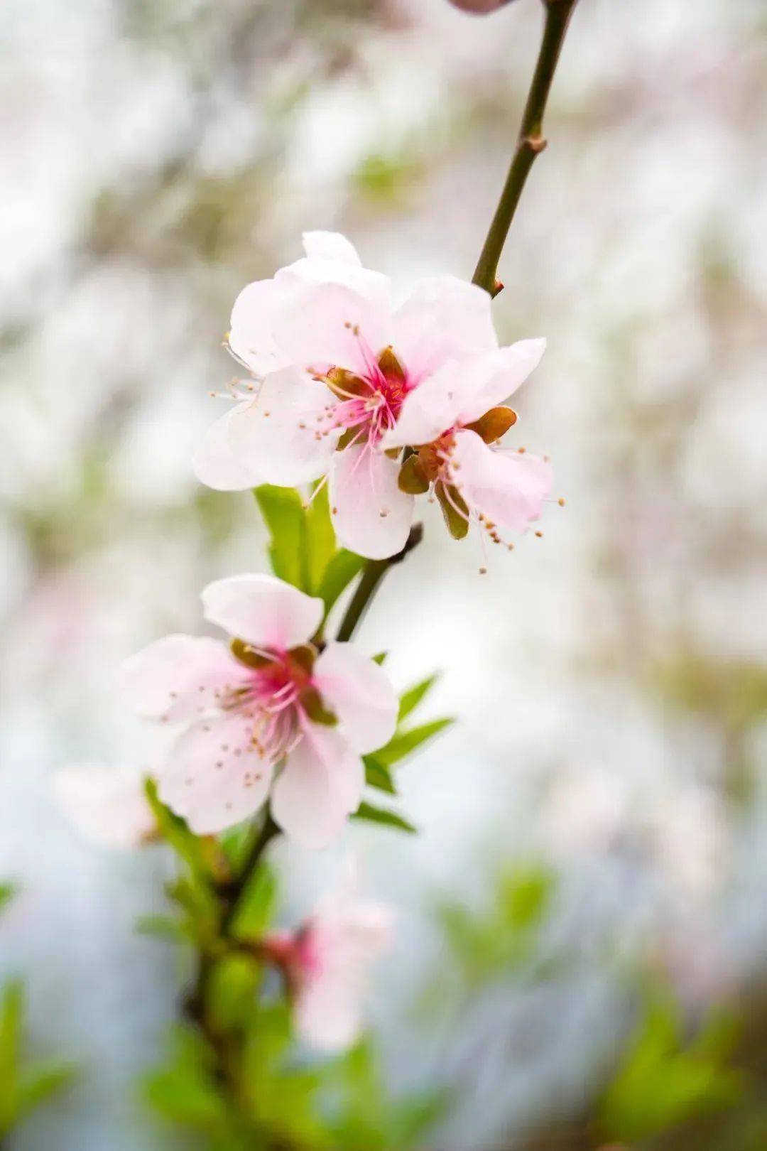 桃花最好辨认的特征是叶子:桃树先叶后花,且叶子细长,而樱花、海棠花、梨花等等大多是椭圆、卵形等比较宽的形状。