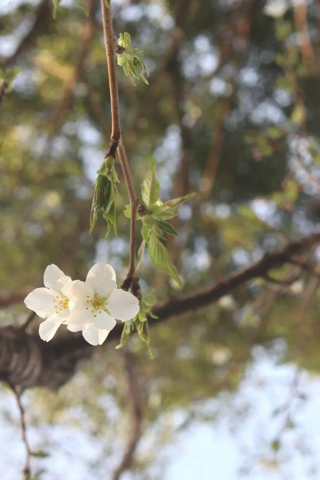 大岛樱是许多樱花园艺品种的杂交亲本,开花时花叶同生,整体看起来白中带绿,清新婉净;花萼花梗无绒毛。