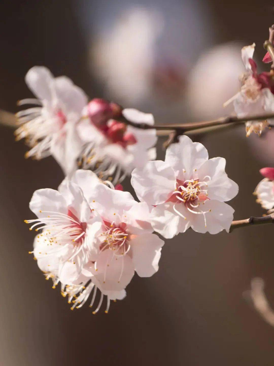 校园里的李花大多都是紫叶李(红叶李),叶子呈紫红色,花色纯白,花期比染井吉野樱更早,梅花谢后即开放。紫叶李是常见的小乔木,四校区均有种植。