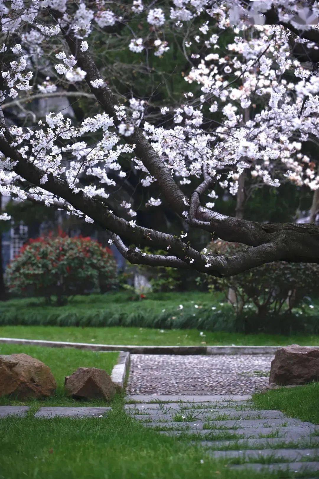 目前早樱花期已过;光草、六教、综合楼、日本研究中心等处的染井吉野樱已全部盛开,曦园等处的大岛樱已近凋谢;但关山晚樱和垂枝樱将于近期陆续开放~