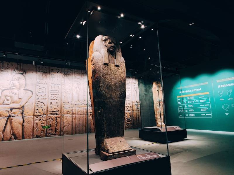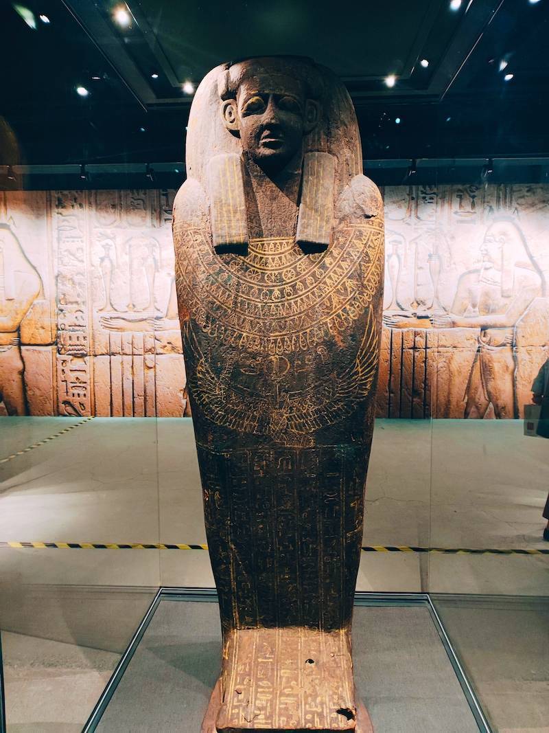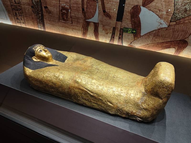 展览共分为“奥西里斯崇拜:木乃伊起源 ”“永恒之屋:木乃伊居所”“来世金装”“尼罗河的礼物”四个单元,展品囊括黄金木乃伊棺盒、动物木乃伊及其面具、古埃及神像、卡诺皮克器官罐、乐器、壁画石刻等。