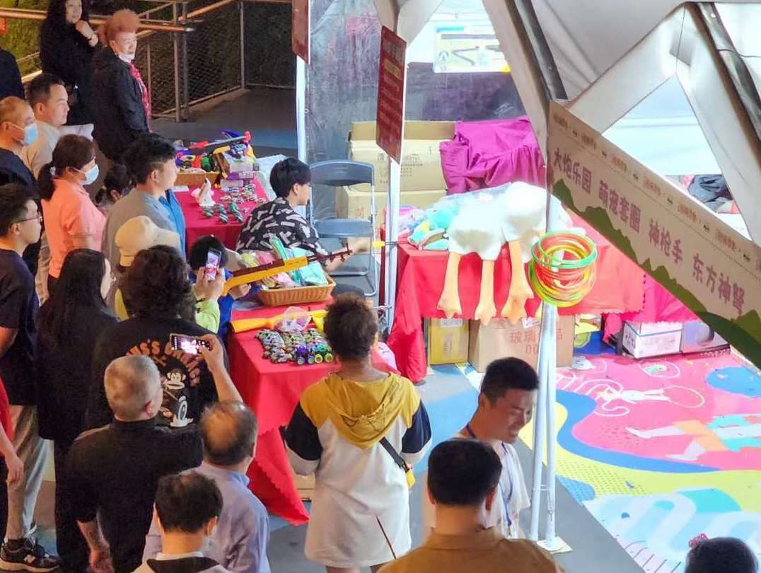 “这里就像展销会一样的,很热闹。”走过儿童游乐区,记者遇到了逛市集的倪阿姨,看着这样烟火气十足的市集,阿姨感慨万分,计划带着孙儿和邻居一起来场组团游。