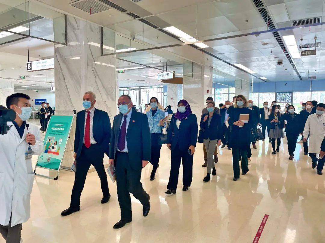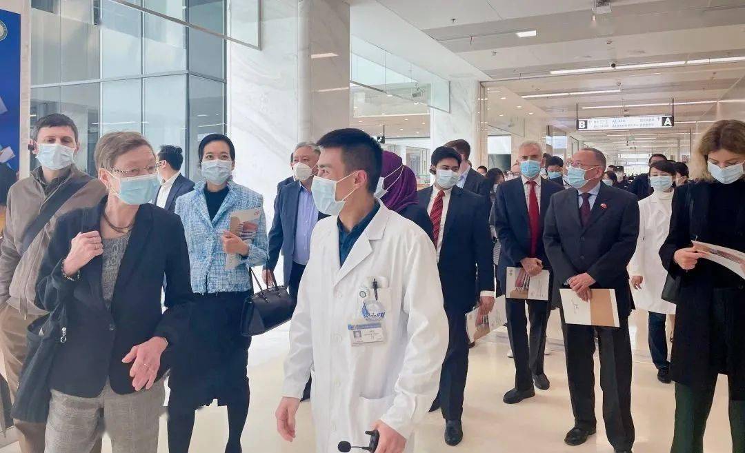 在这里,访问团一行通过观看宣传展板和听取情况介绍,了解了四川大学华西天府医院医疗业务范围、就诊流程等,对成都高质量发展的医疗健康服务表示赞赏。