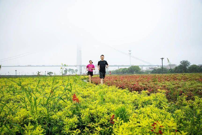 靖江花海紧邻长江,通过科学规划,合理布局,公园四周为环路,内部有园路,通过园路串联起各个景点。设计适宜的建筑小品,既满足景观要求,又方便市民游览,小品设计的尺度、质感和色彩与环境相协调,增加互动性和参与性。