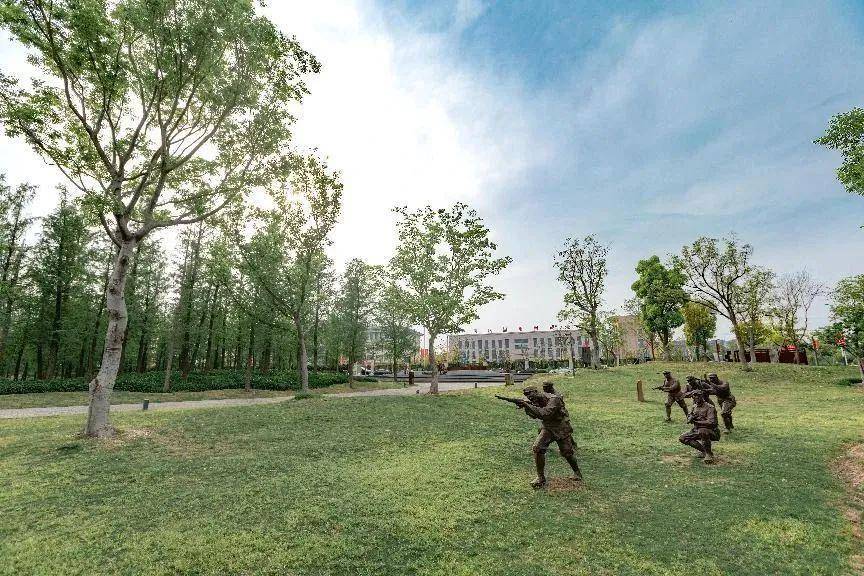 东线第一帆纪念公园位于长江边,采用“户外博物馆”的形式,呈现渡江战役历史场景和细节。展现当年靖江支前群众的奋勇形象。地景式纪念馆穿越于林地,以“东线第一帆”为主题进行布展,让后人重温和延续革命记忆。