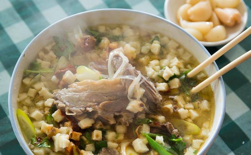 但是,掰馍却是一个漫长的过程,如果想要掰得像当地人一样,至少需要一个小时。很多外地人掰着掰着就没了耐心,馍越掰越大,最后做出来的羊肉泡馍,馍外面已经泡烂,里面还没有泡好也没有入味,吃进嘴里,馍还是僵硬的也没有吸收羊汤的鲜味,很难让人爱上。这也是羊肉泡馍的尴尬之处,如果想要吃到好吃的羊肉泡馍,一定要非常有耐心。