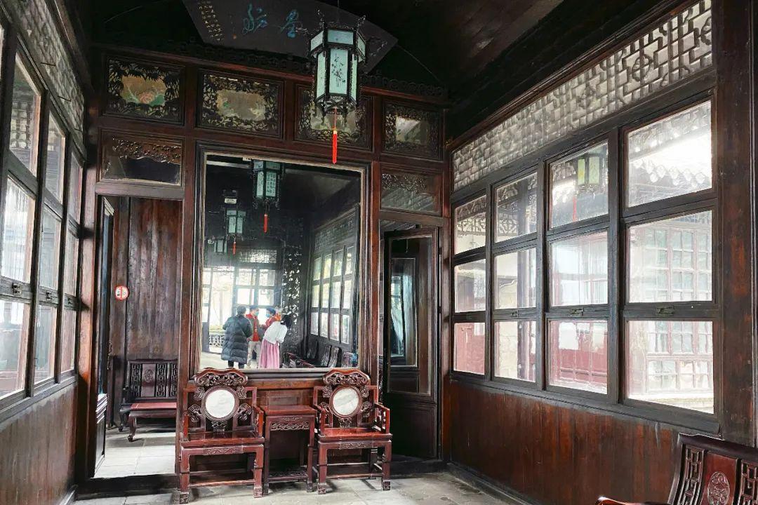 往里面走,这里像一座私家园林般,雕塑壁画,小桥流水,回廊相接,竹木扶疏。