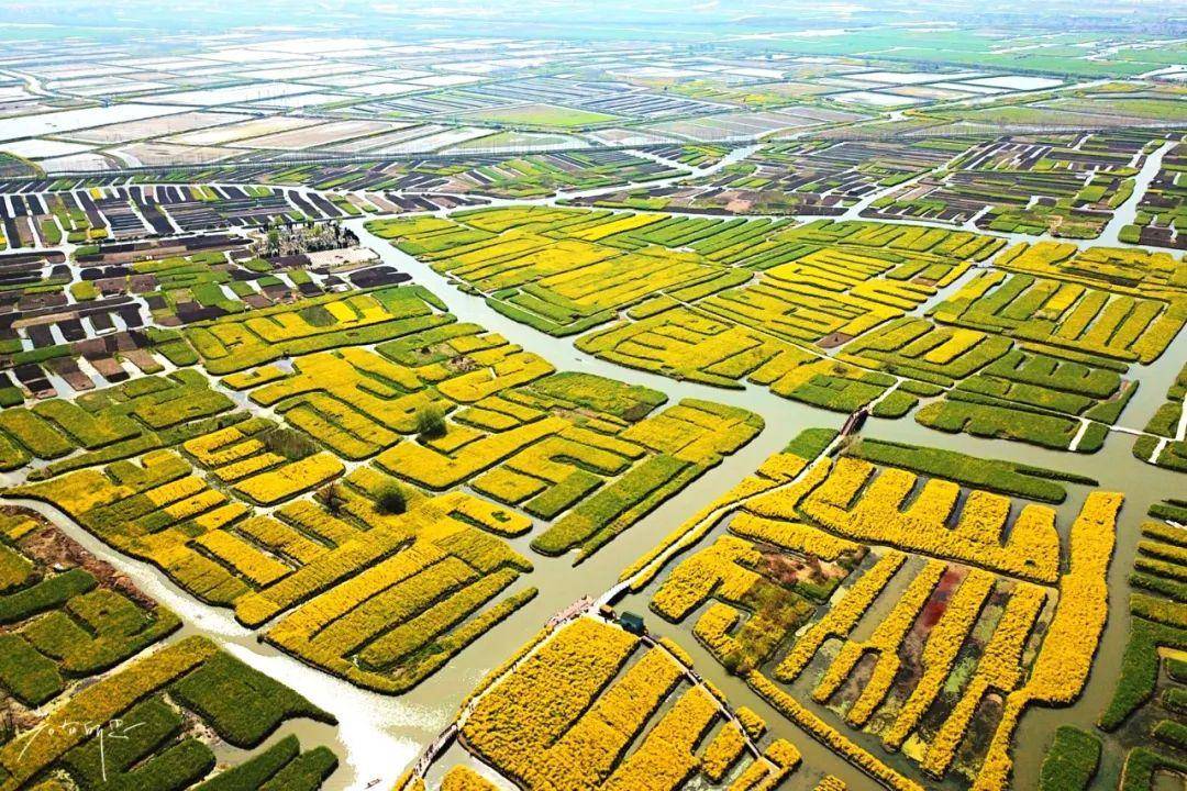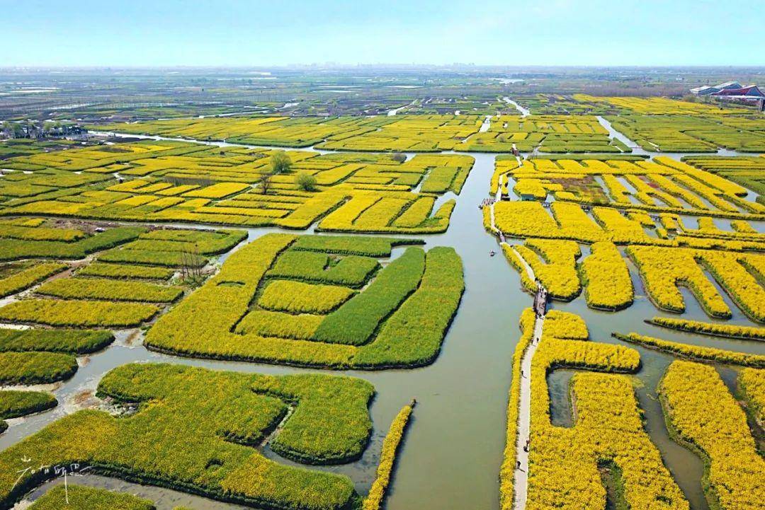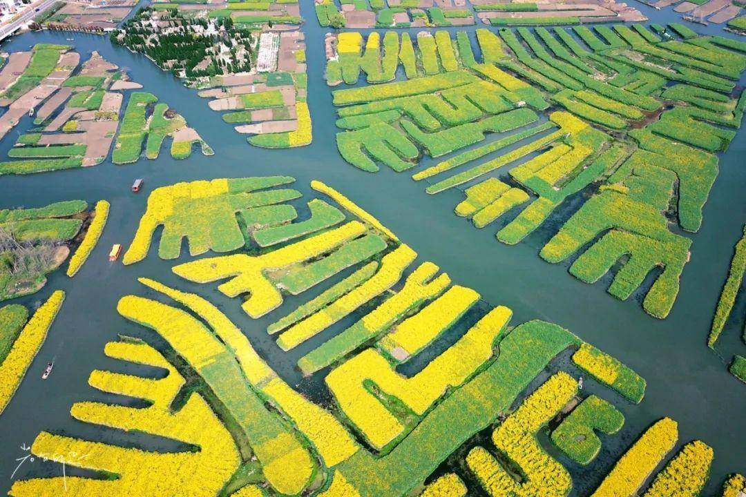 每年清明时节,江苏兴化千垛菜花景区四面环水的“垛田”上长满了金黄色的油菜花。