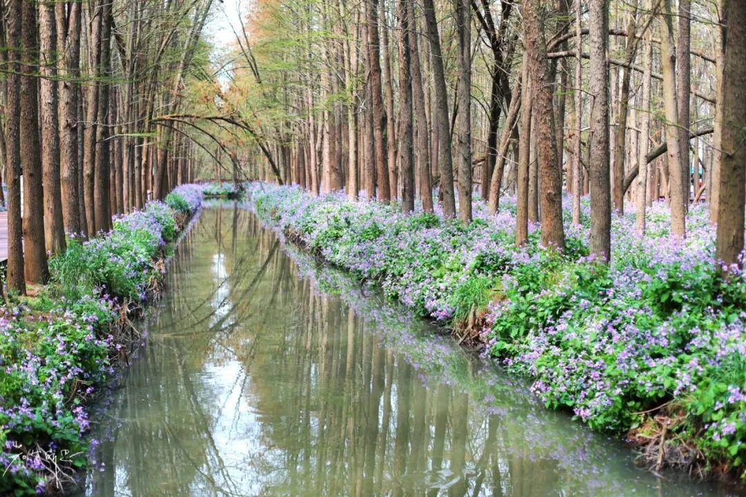 那年我第一次去这片水上森林,真的被美到了,油菜花的季节,刚好也是二月兰花开的季节。