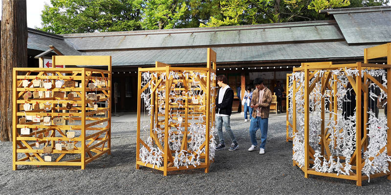 在神宫抽取的预测时运的纸条,可以结挂在木架上,神宫一年一度举行名为“拔”的仪式,统一烧掉,祈福这些纸签遇吉成真,逢凶化吉。
