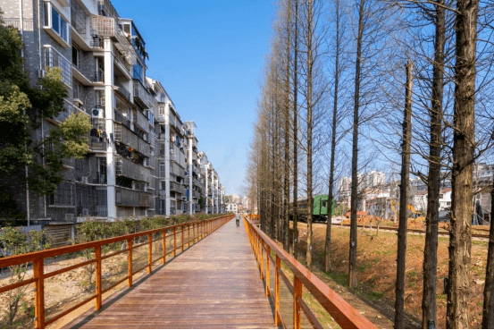 该公园于2020年11月动工建设,位于紫阳大道两侧,南靠五三大道,北靠茶圣路,是由老浙赣铁路路基两侧用地及棚户区改造区块组成。