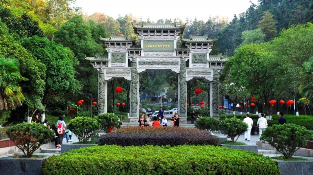 公园内动植物资源丰富,物种多样,其中省级以上保护的珍稀植物25种,有珍稀的国家一级重点保护野生植物南方红豆杉,国家二级保护野生植物厚朴和鹅掌楸,以及最古老的裸子植物"活化石"银杏等大量珍贵树种、古树名木和重要景观树。主要景观有云碧阁、辰钟楼、毓秀台、东岳庙等。