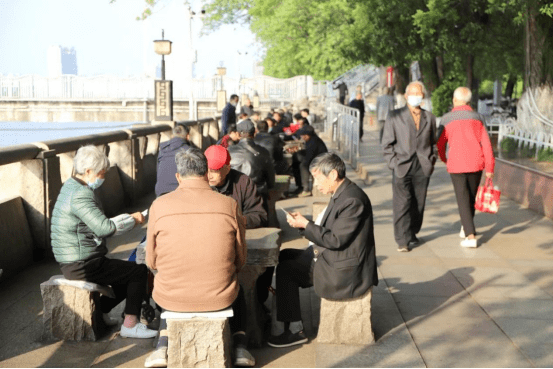 散步、看花、闲谈、下棋、锻炼