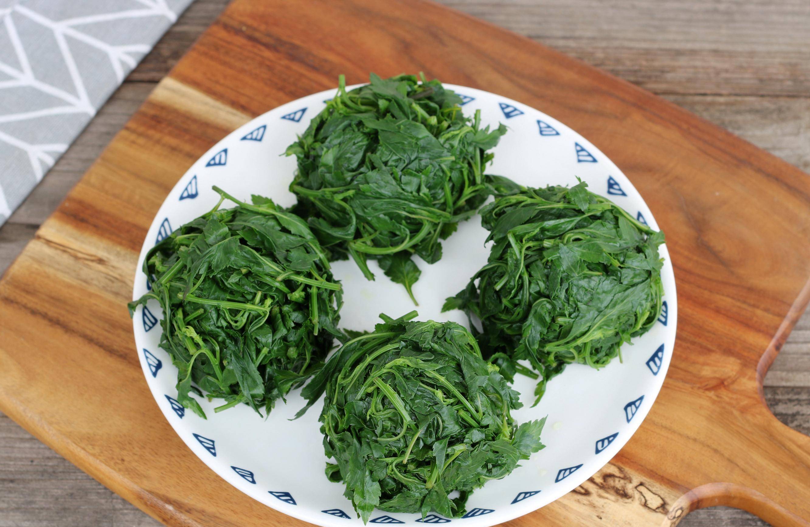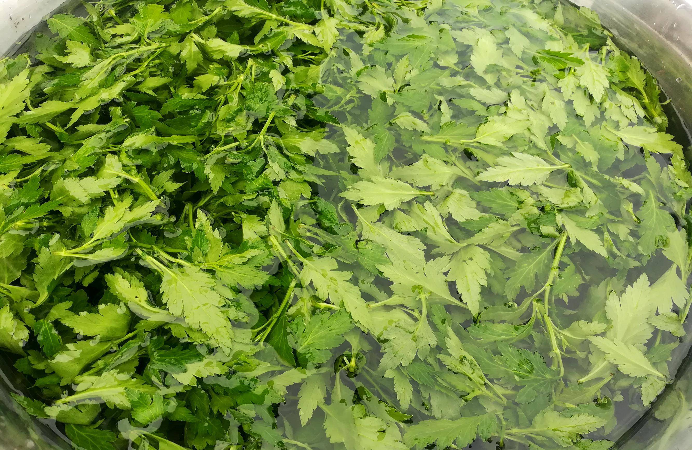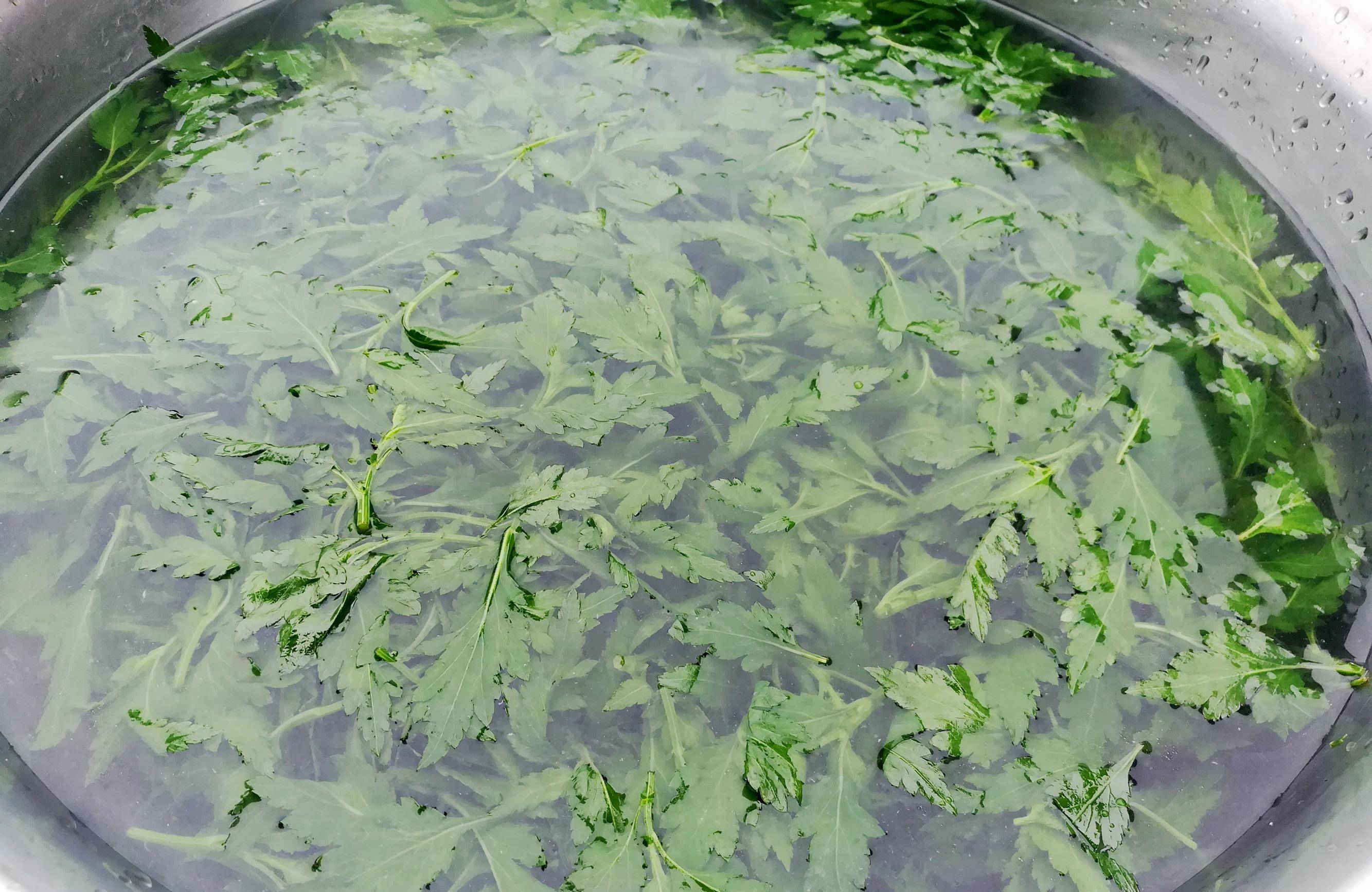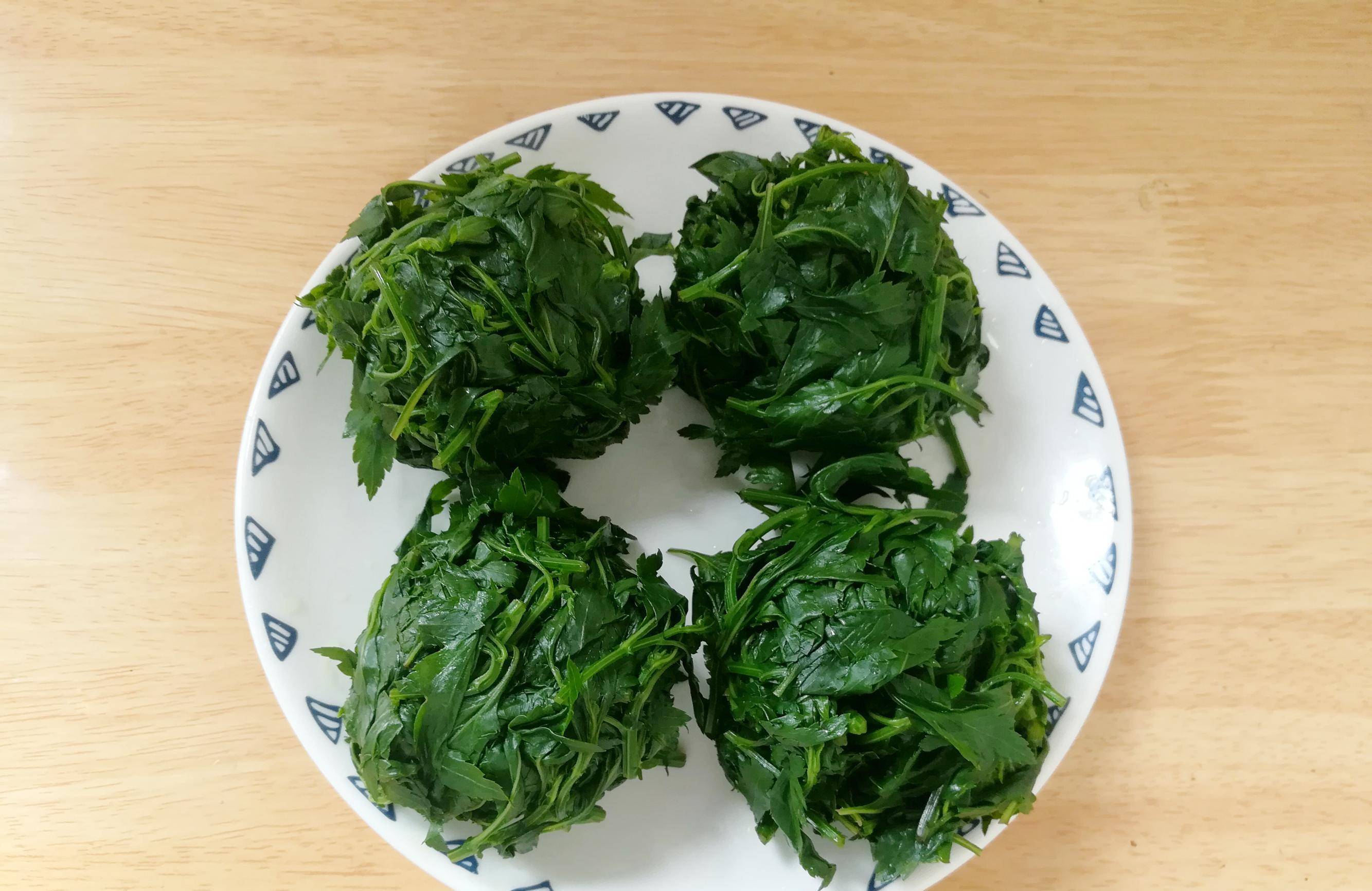 菊花脑放到凉水里降温,捞出来沥干水分。