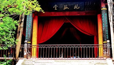 托孤堂;《三国演义》有一段白帝城刘备托孤的故事:蜀国皇帝刘备的结拜兄弟关羽败走麦城,死于刀下后,备为他报仇,不听众臣劝阻,起兵讨伐东吴。途中另一个结拜兄弟、伐吴先锋--张飞丧身叛将范疆、张达手中,刘备愤而不谋,催兵猛进。章武二年夏六月,被东吴大将陆逊用计火烧七百里军营,在败于彝陵猇亭之地,因而退守到白帝城中。三国久未统一,两弟先后丧命,大军新遭重创,国事私仇使刘备忧愤成疾,眼看朝不保夕,乃招丞相诸葛亮星夜赶至。在永安宫中,刘备把儿子刘禅(阿斗)委托于诸葛亮。然后便一命归天了。从此,白帝城就因这段脍炙人口的故事而更加闻名于世了。