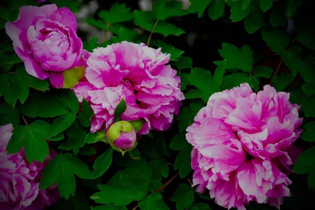 各式各样的牡丹花朵,一丛丛、一簇簇,有的含苞欲放,有的刚刚绽开,有的迎风怒放,千姿百态,朵朵的牡丹花像一个个婀娜多姿的少女,好看极了。