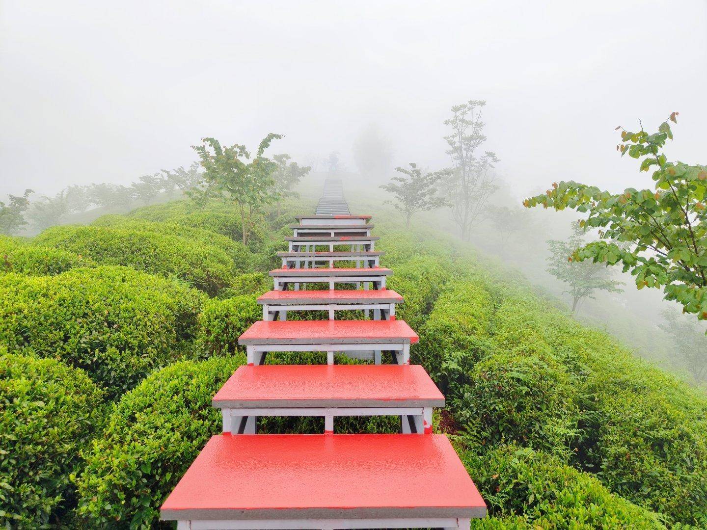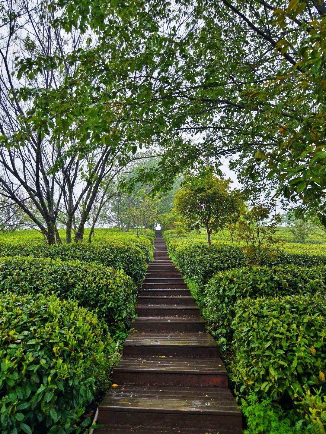 在山顶建有玻璃栈道、悬空步道,让游客更易观云海、看日出,将茶园景色尽收眼底,从观音镇沿步道上山,可领略不同高度的田园景色;坐车上山,沿途可观赏樱花、桃花等。