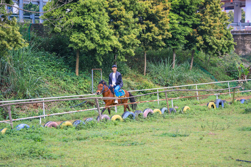 龙台山地势平坦开阔,所以在生态园里设有一个马场,游客可以在此享受策马奔腾的快感。这里的马儿很温顺,跑起来也没有很快,体验骑马的小伙伴表示感觉好极了。
