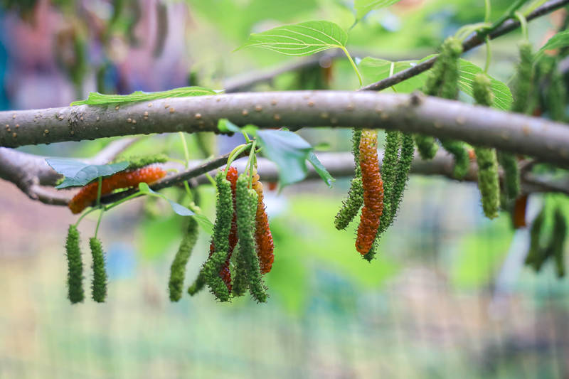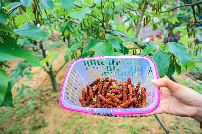 现在正是采桑葚的时节,龙台山生态园的桑葚种植区里,枝头硕果累累,我们一行人也是踏踏实实过了一把采摘瘾。