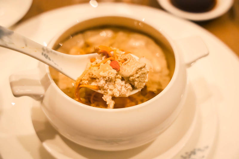 一人一份的虫草花炖肉汁汤火候恰到好处,不寒不燥的虫草花性温和,煮好后有韧劲但不费劲,汤汁鲜味,肉质酥烂,味道香甜,是很不错的营养汤品。
