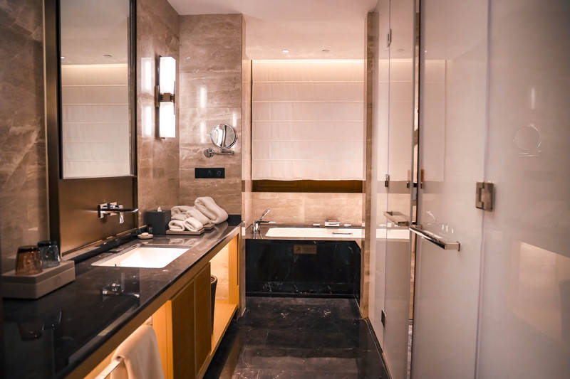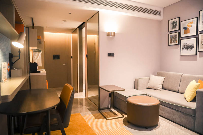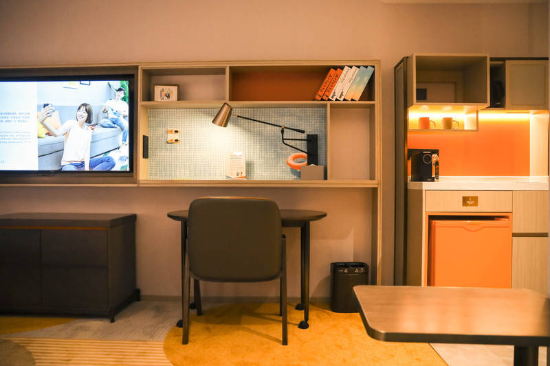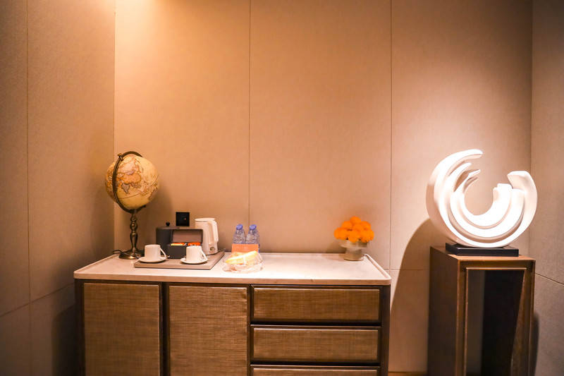我最喜欢的是会客区,除了有一张舒服的小沙发外,还有一个专门的办公区,独立台灯的光线刚好,木质的桌椅很有家的感觉,这会可以非常舒服地在酒店办公了。