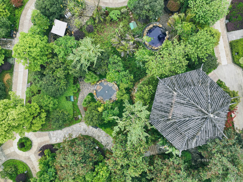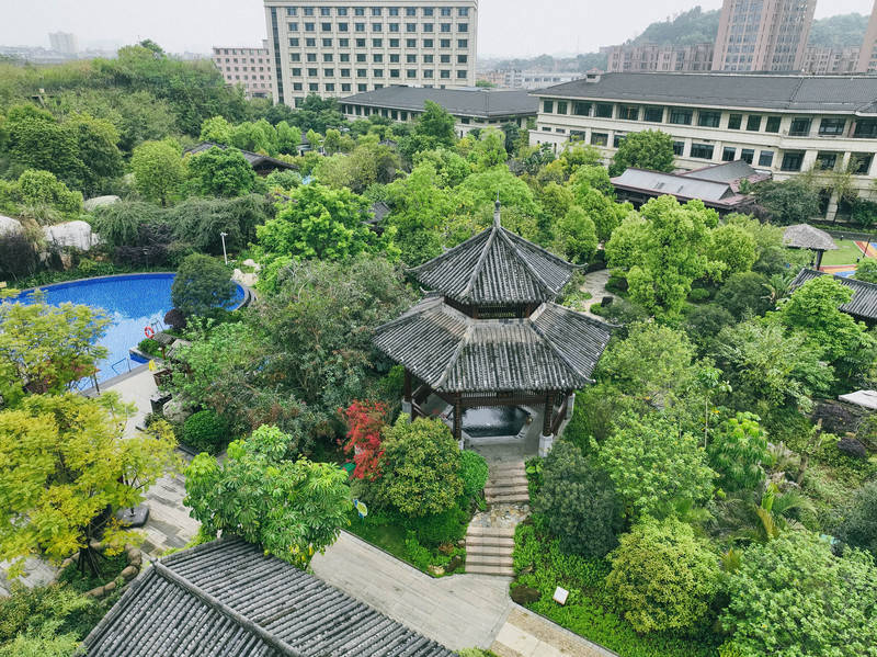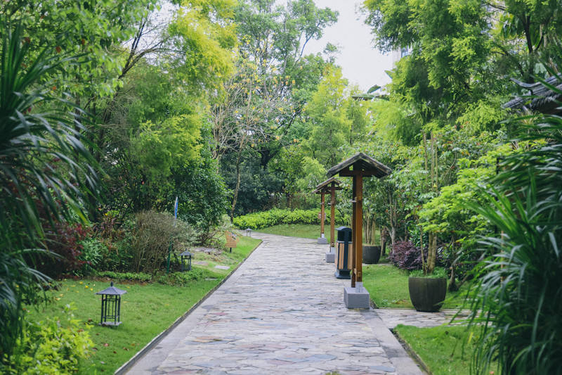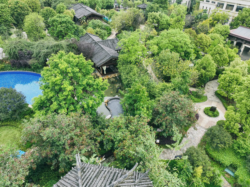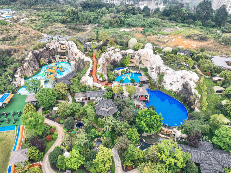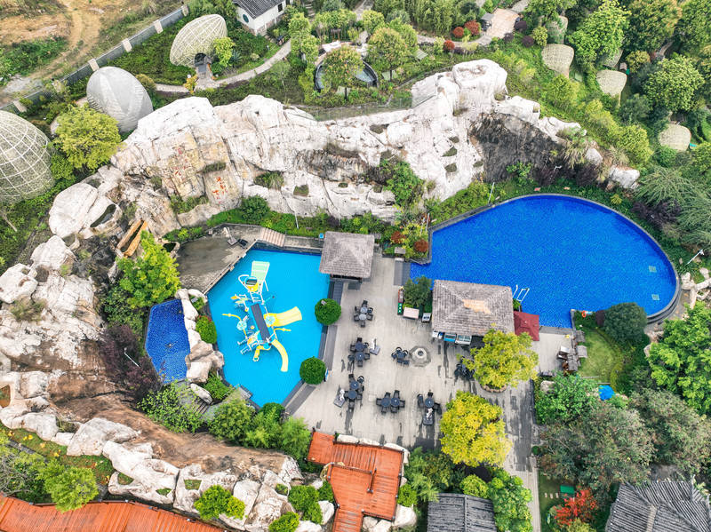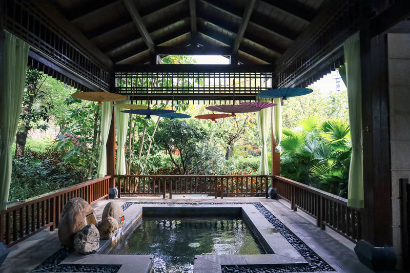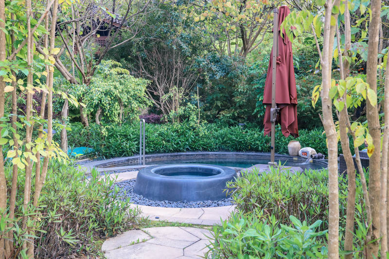 度假村内绿树如茵,庭院设计巧妙,一步一景,建筑也是古色古香,让人赏心悦目。在度假区的各个角落都有温泉泡池,采用不同的造型和设计,让每一个温泉充满趣味,同时私密性十足。