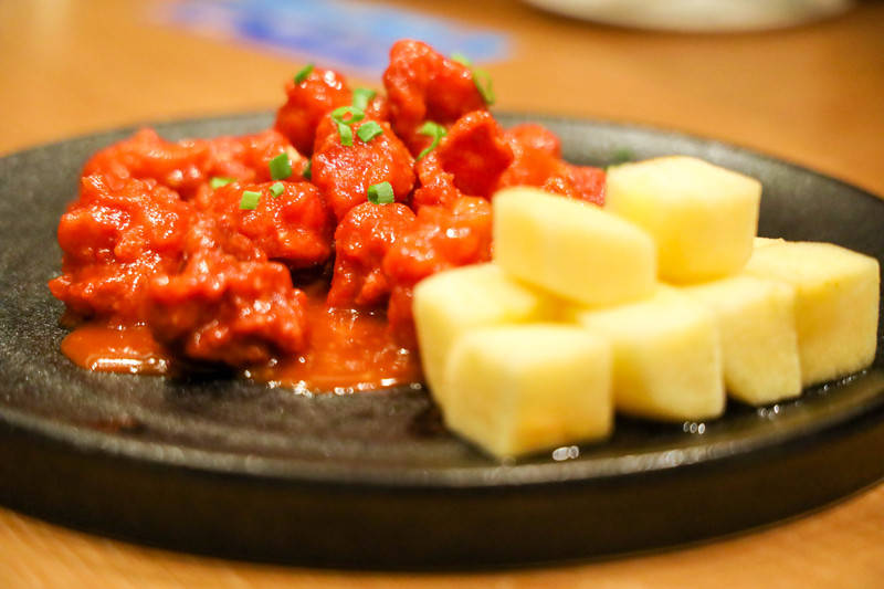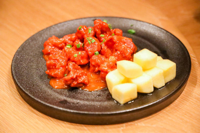 荔枝肉是福建的名菜了,浑圆可爱的外形酷似荔枝,红糟腌制过后,有着淡淡酒香味和酸甜,再搭配苹果的清新,这道菜吃的满足又舒服。