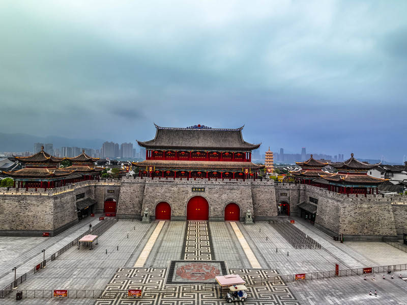 三山一水,一楼两塔,这是老福州的城市格局,也是闽越水镇的格局。亭台楼阁,石桥民居,古韵十足的闽越水镇以“海丝之路”为主题建设,将人们带到了福州的百年水乡。