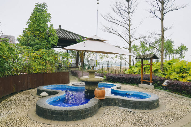整个度假村占地65亩,其中室外温泉区就占了一大半。首邑古今区、首邑药浴区、首邑情人泡、首邑物语区、首邑海洋世界、首邑西洋理疗,这六大闽式特色泡池区包含了大小不一的52个温泉泡池,将闽式文化和养生温泉相结合,特色十足。