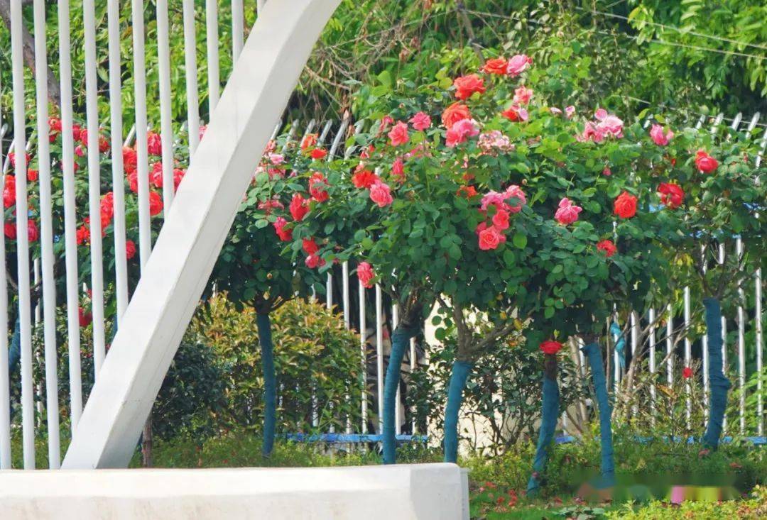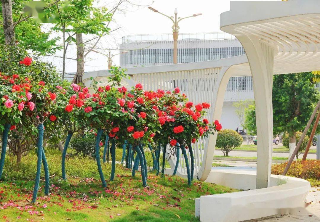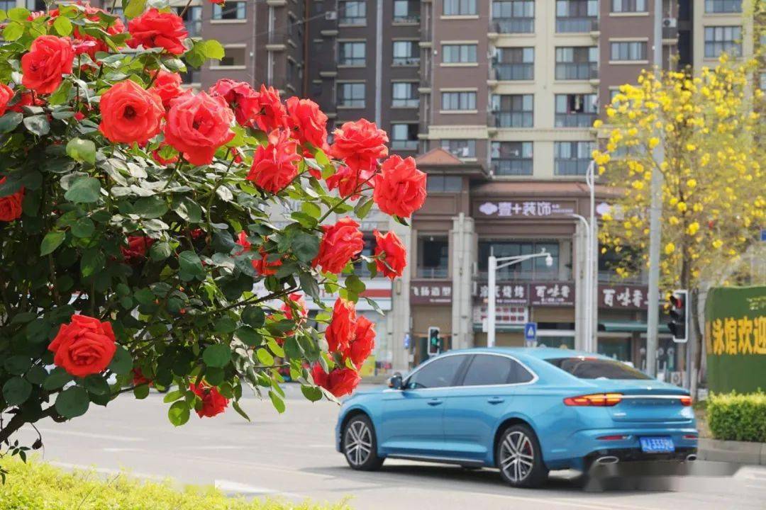 娇美的月季与造型各异的精致小品,营造出“绿如海、花如潮”的特色道路景观,满目芬芳,赏心悦目。