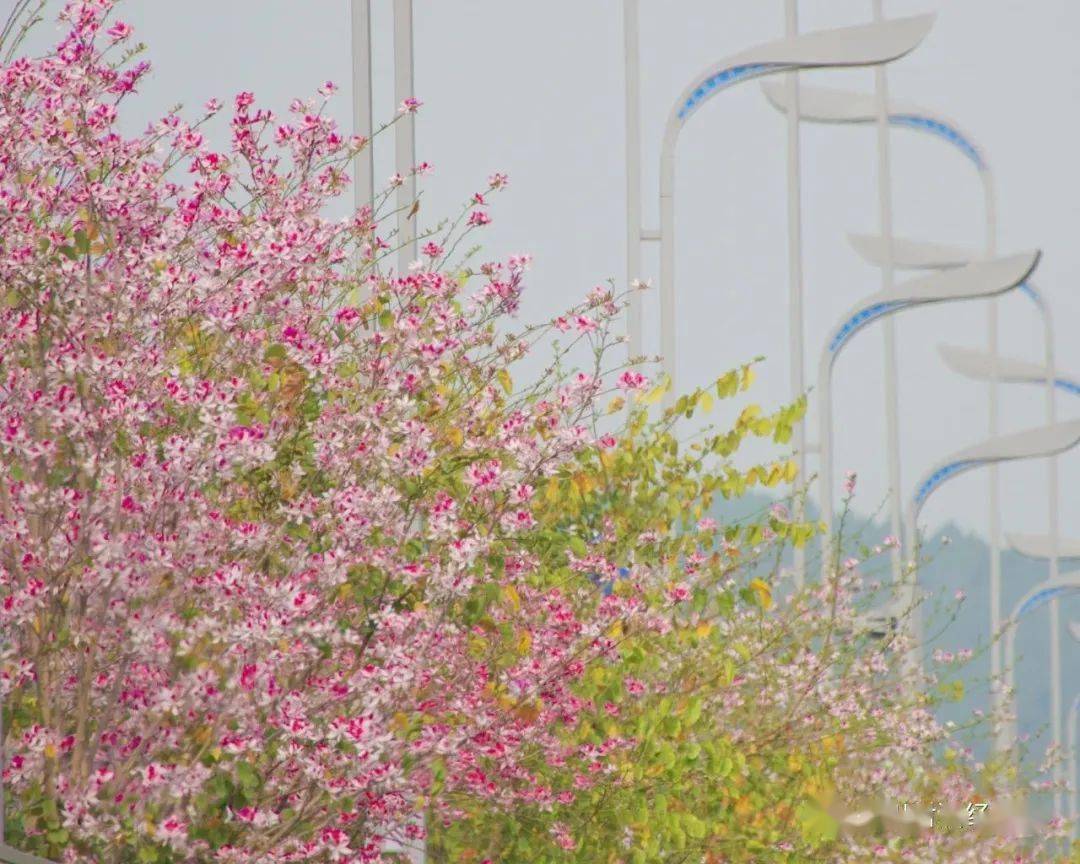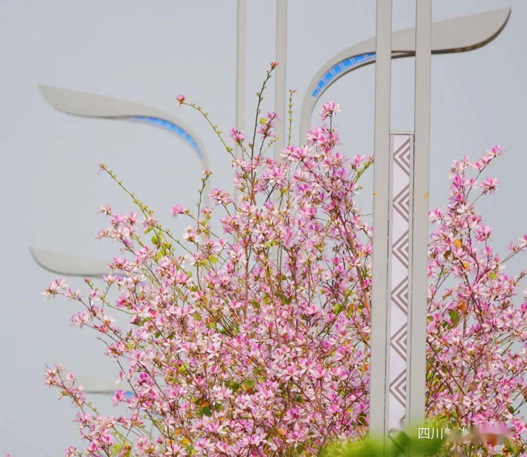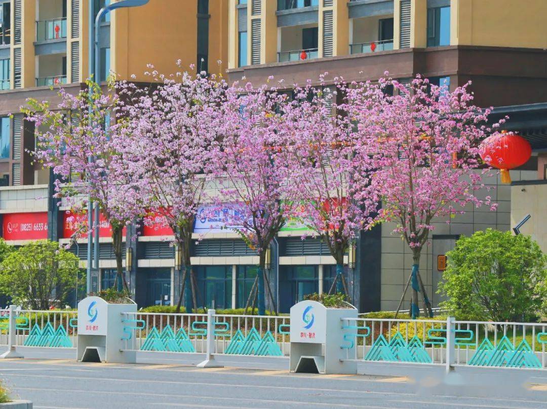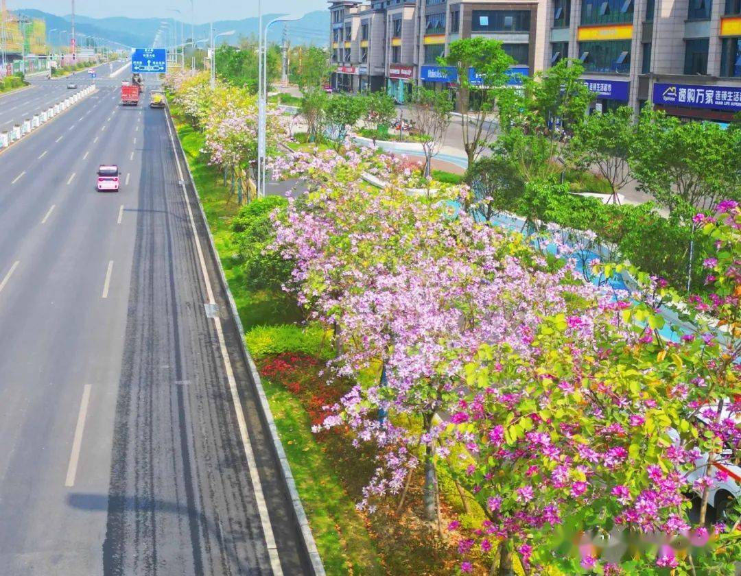 涪江大道上,紫荆花挂满枝头,紫粉的花蕊将经开区的道路装点成一片热情洋溢的胜地。
