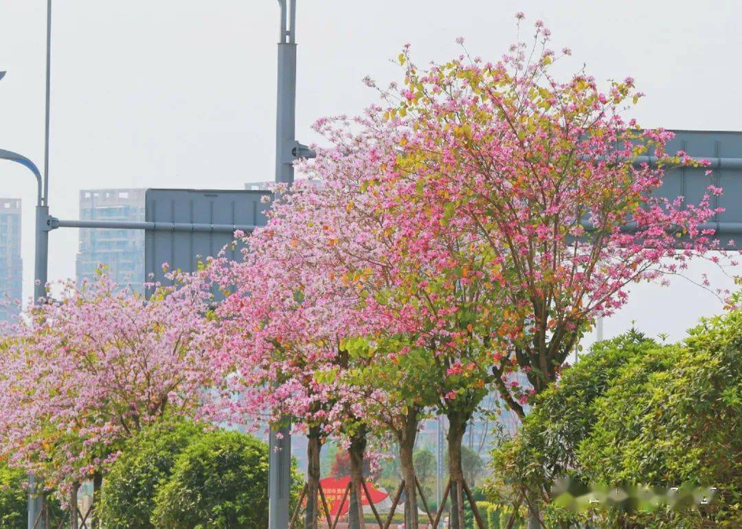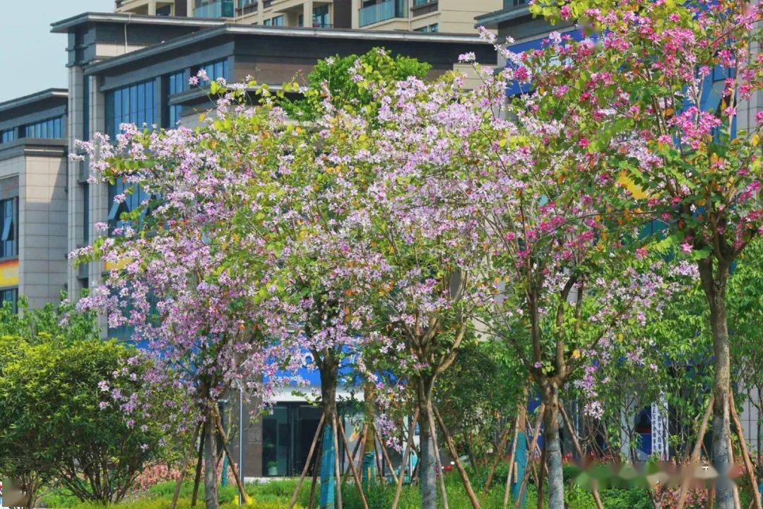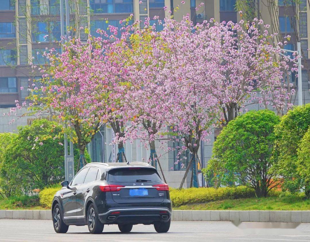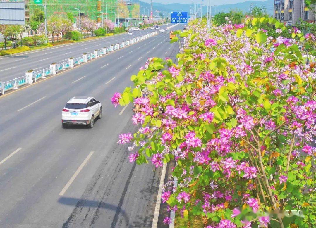 涪江大道上,紫荆花挂满枝头,紫粉的花蕊将经开区的道路装点成一片热情洋溢的胜地。