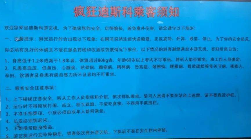 综上所述,只要大家在游玩的时候,合理选择适合自己和家人的大型游乐设施,按照“乘客须知”乘坐,那么游乐设施定会带给我们一场安全愉悦的奇妙之旅。