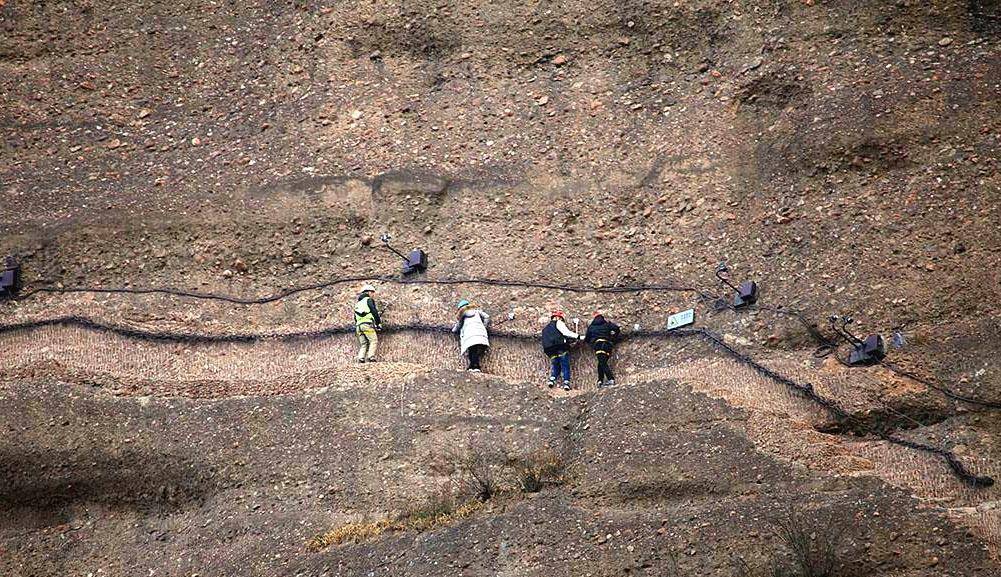 这个孔洞在修建的过程中是很艰难的,一个是它下面是悬崖,又是奔腾的江水,上面也是悬崖,人只能从上面通过绳子拴着吊下来,先用火烤后,再浇上水,最后用铁钎、用榔头一点点敲打,每个洞一锤一凿基本上要打一个多月的时间。