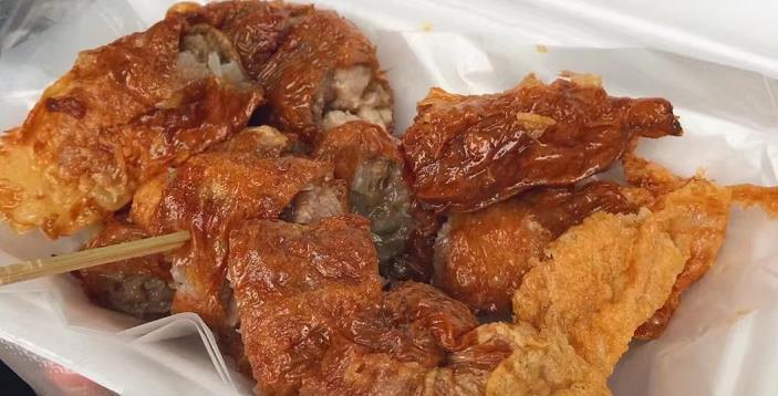 外地人称它为闽南春卷,是将肉末、马蹄、豆腐、五香、盐巴等等食材卷进特制薄豆皮中,卷成一卷切成三段,放入油锅中炸至金黄捞出,口感外酥里美,酥脆可口,回味无穷。