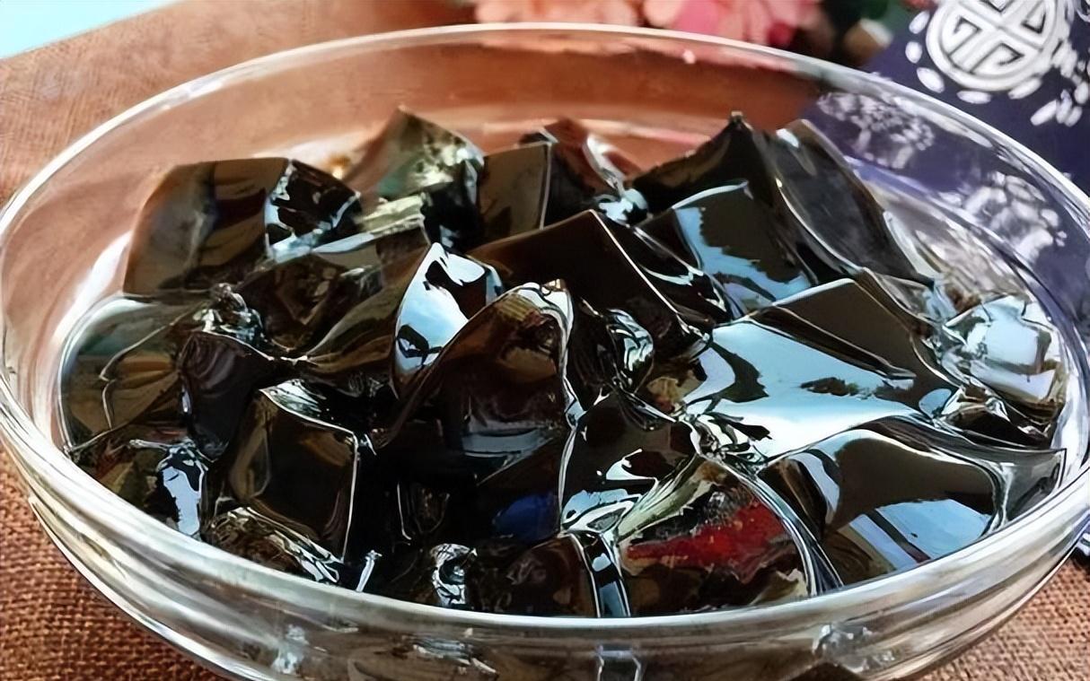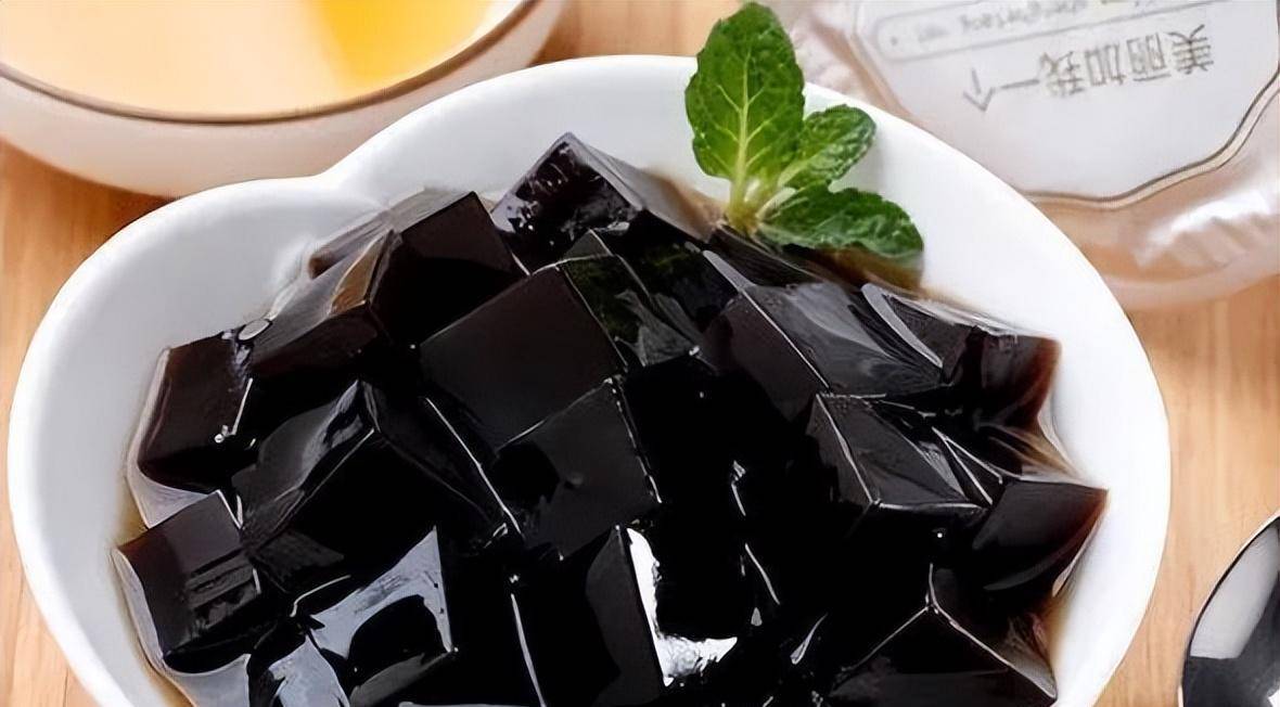 做好后的色泽呈现为亮黑色,好似一块块果冻一般。并且还散发着清新的气质,让人有些上头。吃起来十分的柔美滑润,是一款清凉解暑的夏日神器。