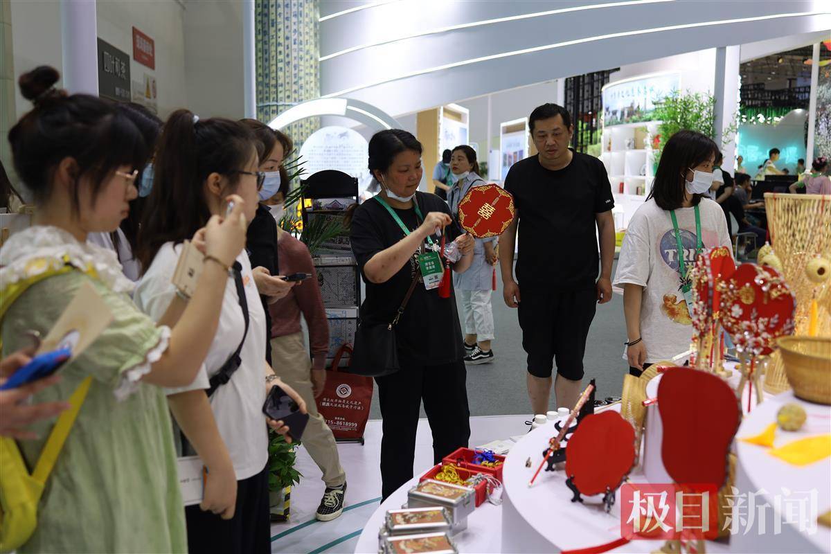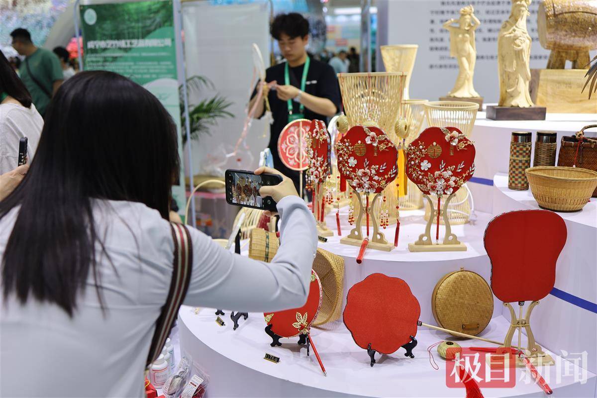 极目新闻记者在咸宁馆看到,不少游客在非遗文化和产品展区围观。“这些产品设计的非常精致,摆在家里也特别合适。”武汉市民陈女士向极目新闻记者介绍。