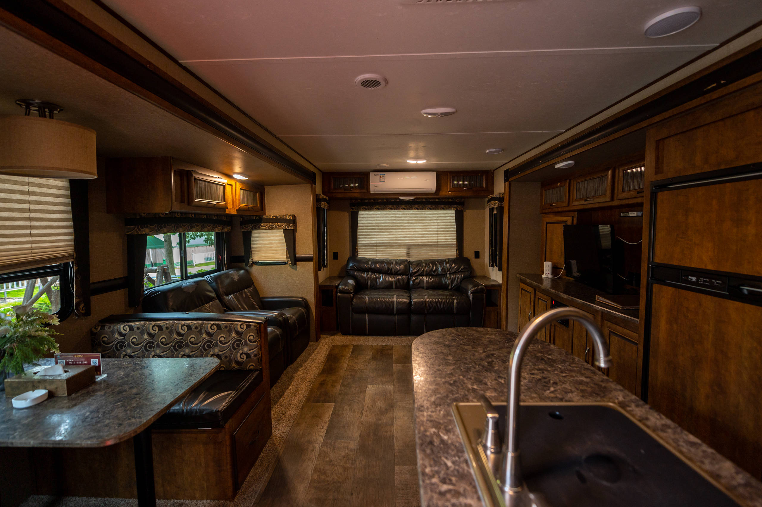 房车由一室一厅一卫及一个吧台组成,房间和客厅非常宽敞,比我想象中要大很多,晚上这里是休息的地方,白天可以三五好友坐下来,喝喝茶聊聊天,非常惬意。