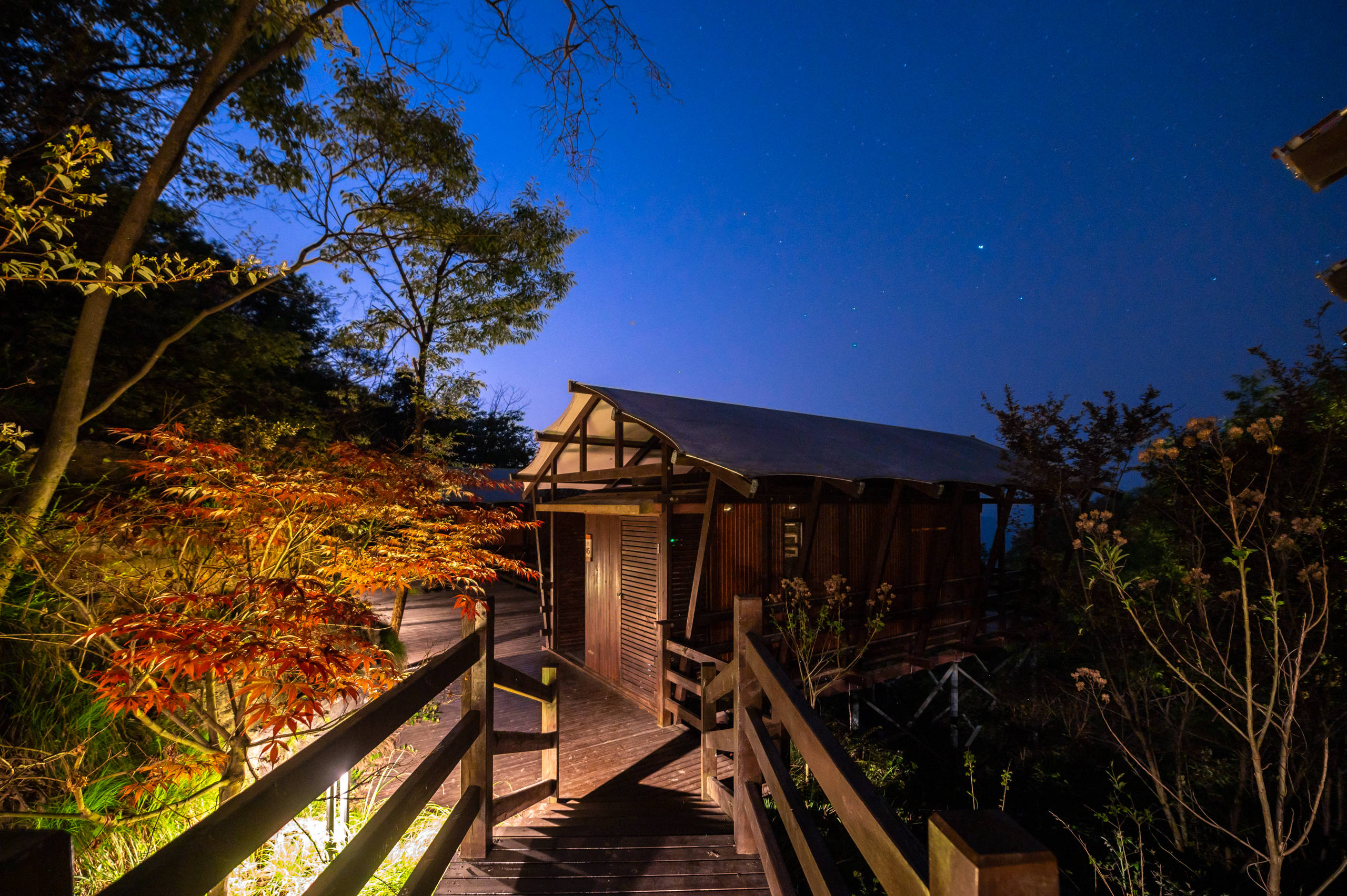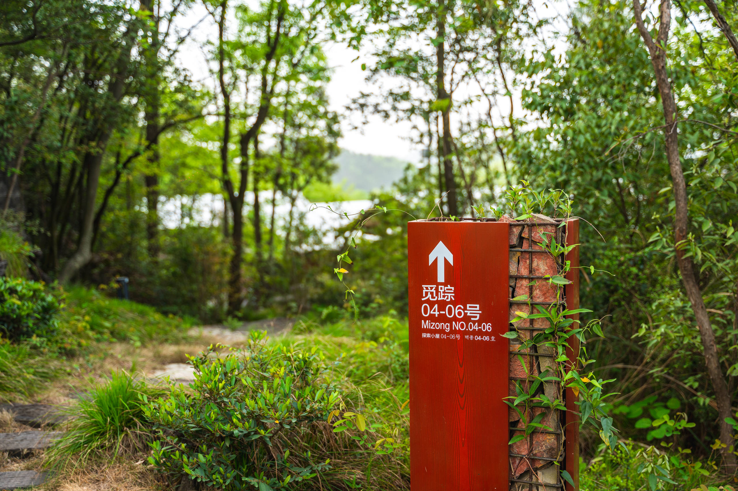 我住宿的是帐篷酒店,其实也是小木屋,只是房顶加了一定帐篷,远远的看起来好像一顶大帐篷。这里的房间名字起的非常诗意,就比如我住的叫“觅踪”,由营地前台乘坐电瓶车差不多两三分钟就到了这里,要去往房间,还需要经过一段弯曲幽静的小山道,这不正是觅踪嘛,寻寻觅觅。