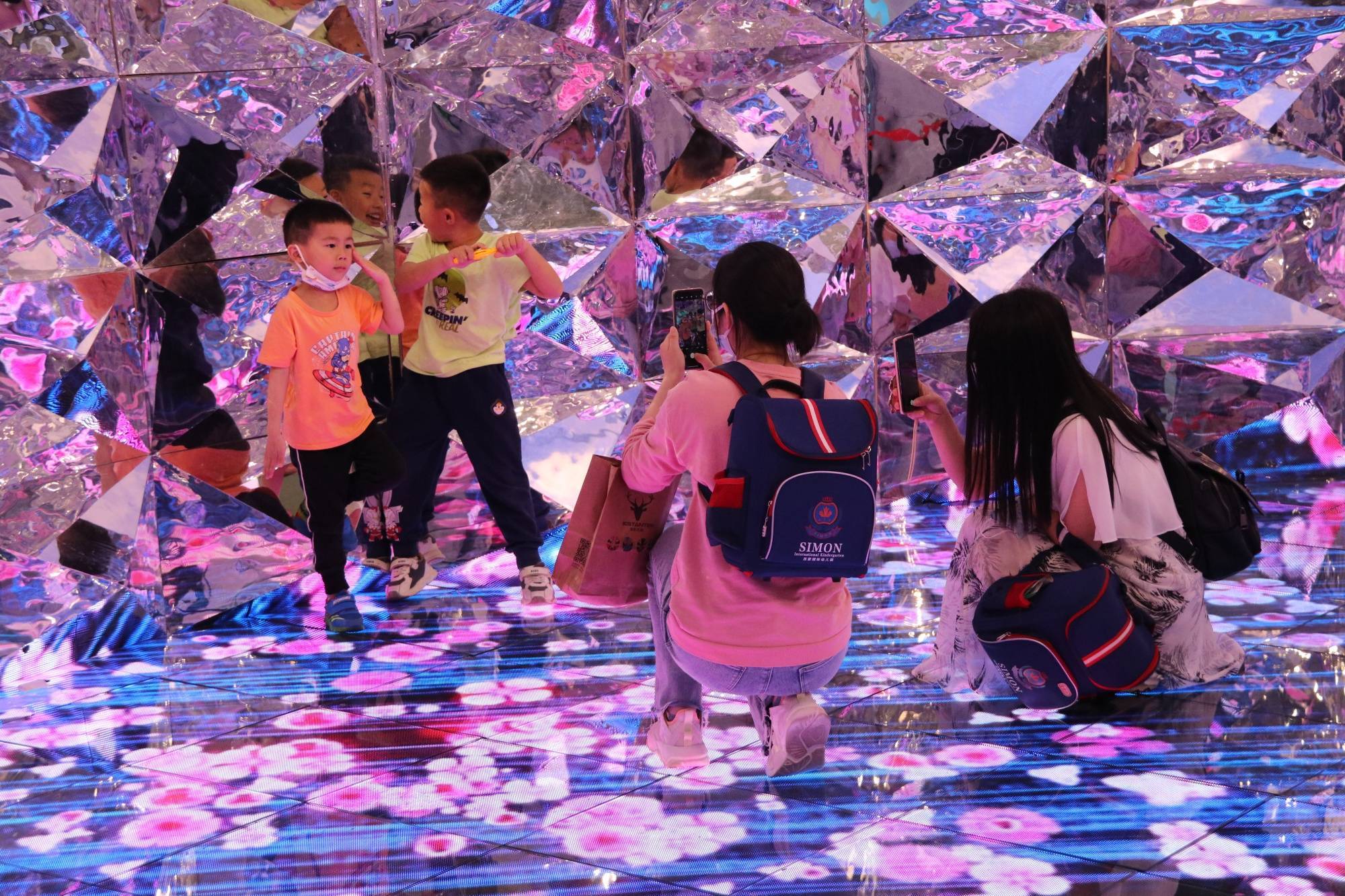 观众在大江大湖武汉馆“无限之镜”展区内打卡拍照(央广网记者 张卓 摄)