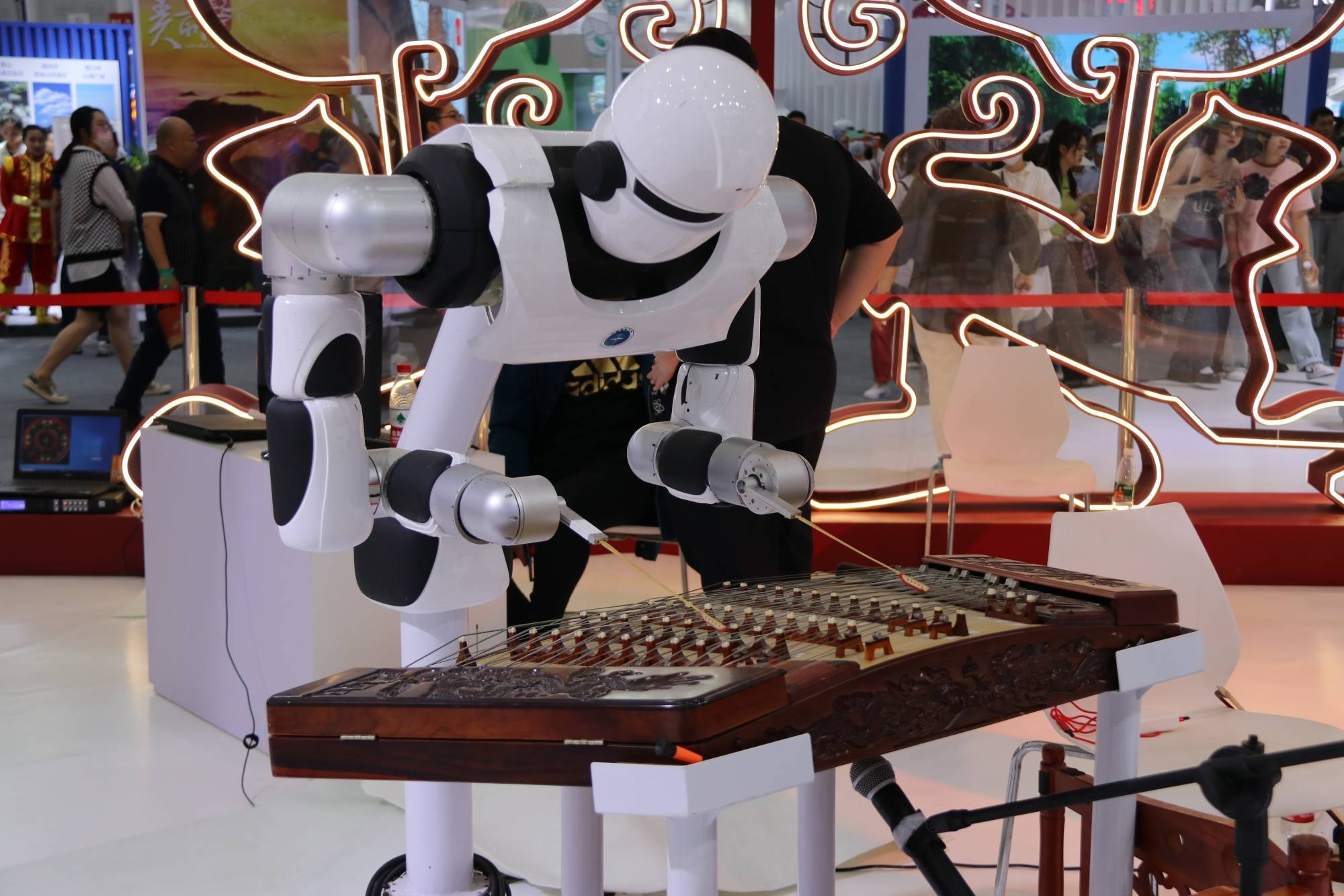 湖北作为人工智能高科技的主要集聚地,创新成果不断涌现。在展馆现场,观众还能欣赏到机器人演奏古琴对阵真人演奏激光琴的奇妙斗琴场景,参观机械臂倒茶,通过智能穿戴设备体验武当山金顶上太极起舞等。
