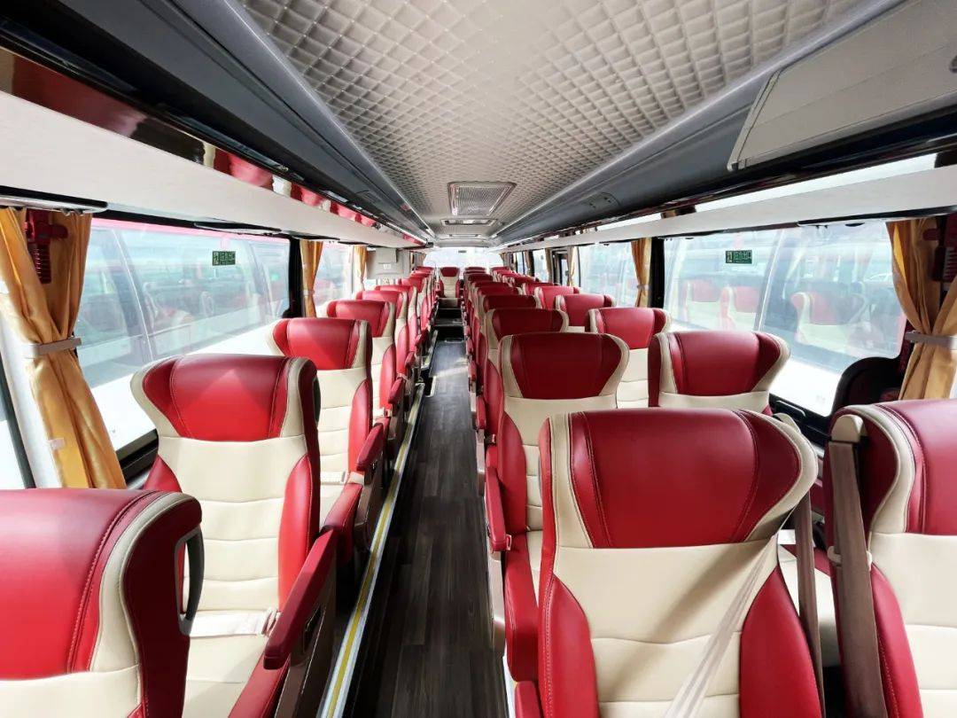新长运客运公司三分公司副经理刘志坚说:“这次新购买的高端旅游客车长12米,均为35座,具备一键启动、自动巡航功能,车内配置了豪华的‘2+1’航空座椅和5个一键式自动击窗器,客车底盘可自动升降达25厘米,车内配有LED氛围灯和阅读灯,每个座位下有供旅客充电的USB接口,车辆驾驶舱自带保护,驾驶座椅具有自动按摩和加热功能,行李舱旁还设有驾驶员休息舱,旅客不系安全带还能自动报警提示。”