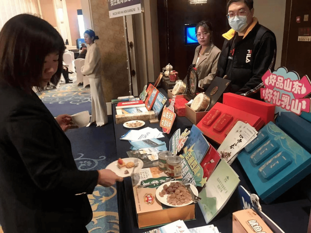 乳山,依山傍海、物产富饶,山的馈赠、海的丰饶赋予乳山舌尖上的诗意和浪漫,是全国著名的水果之乡、水产之乡,拥有苹果、大姜、茶叶、牡蛎、海参、对虾等25个国家地理证明标志商标,在推介会上,我市向东北三省的推介了“乳山好礼”-乳山绿茶和乳山姜制品等产品,深受当地人赞誉。