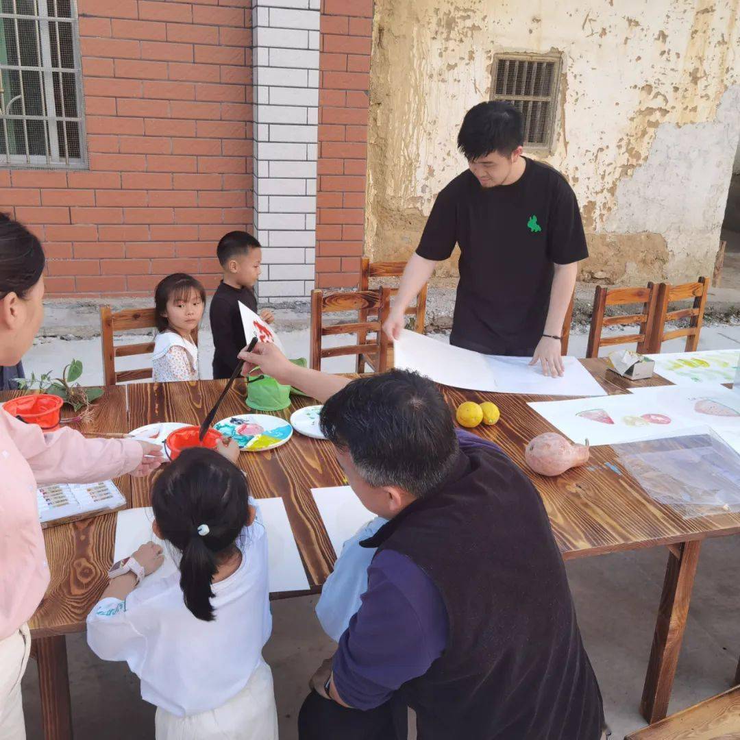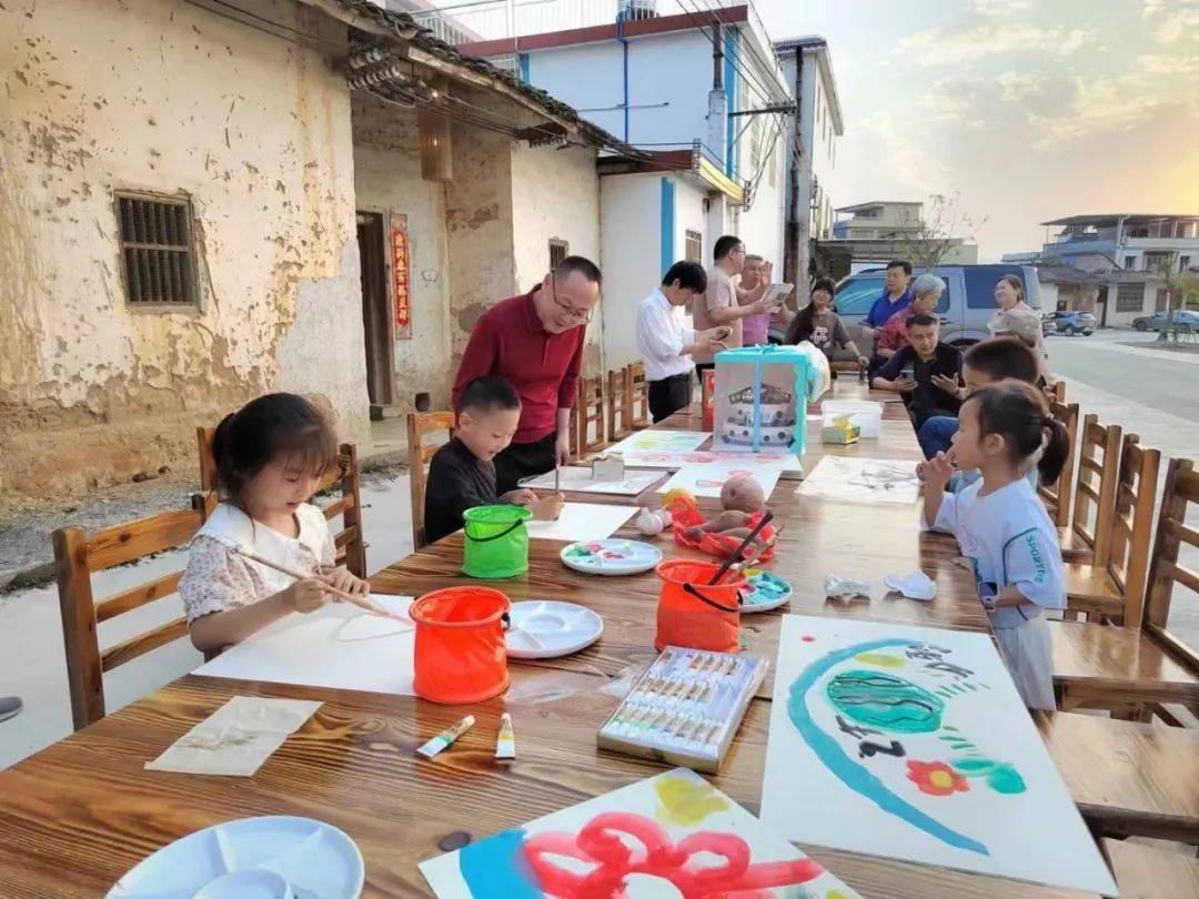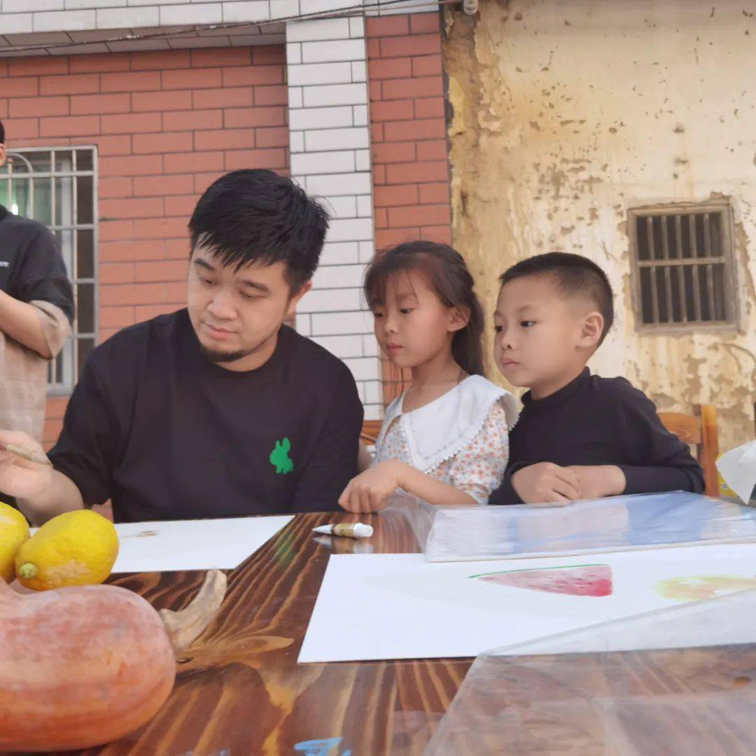 看到了广州美院实验艺术系主任刘庆元老师指导乡村孩子画的墙绘,很受启发。即请陈德道在翁城找几面墙出来,漆成蓝色(刘庆元那漆的是黄色),然后请当地小朋友联合创作。现在农村的墙绘,大多粗俗不堪,对乡村环境造成或大或小的负面影响。刘庆元的实践成果,具很高的借鉴意义。