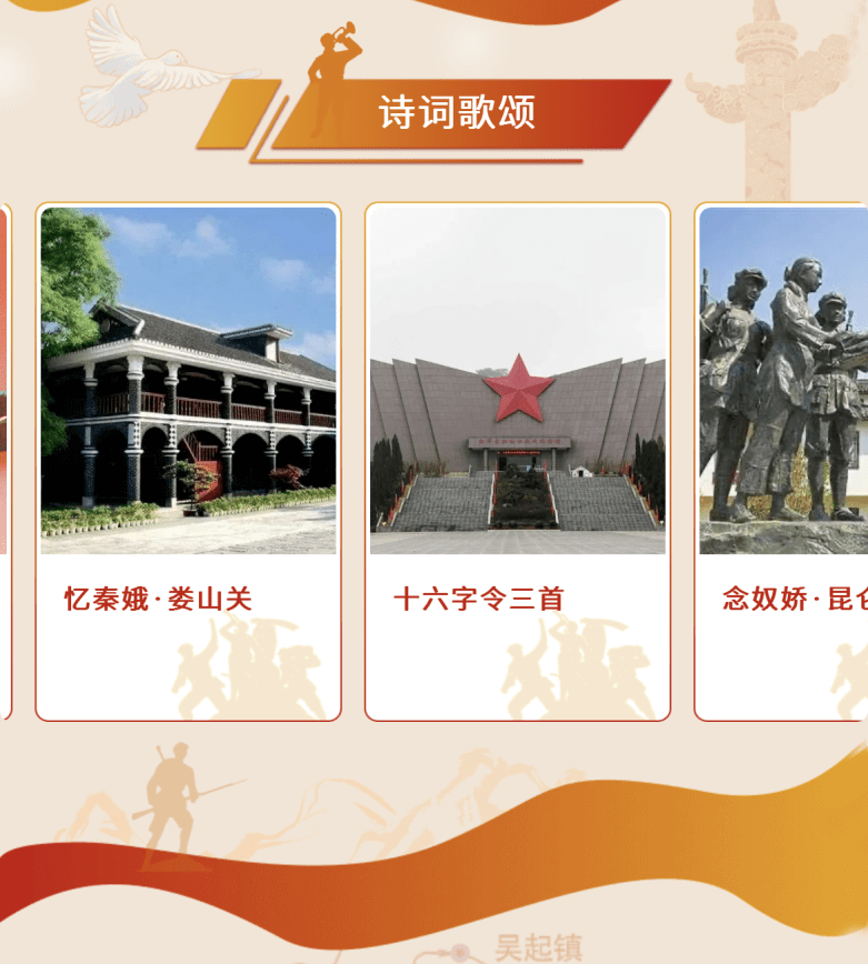 “诗词歌颂”一栏以图文的形式集中展示了多首经典红色诗篇。一首首红色诗词,记录了共产党人和中国人民坚韧不拔、宁死不屈的大无畏精神,左右滑动即可查看更多文字内容。