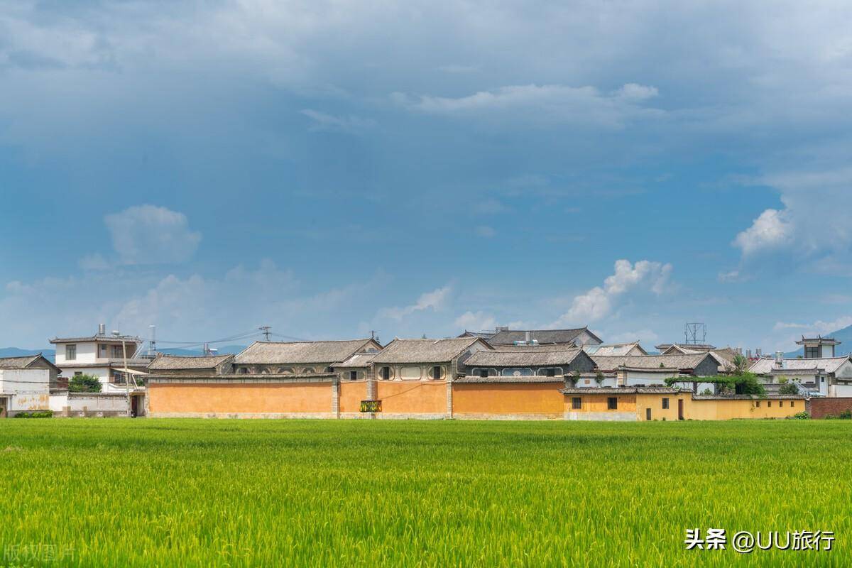 喜洲古镇是大理最具田园风情的古镇,四方街上弥漫着喜洲粑粑的香气,走进小巷,四处悬挂着扎染。严家大院有标准的“三坊一照壁,四合五天井”。转角楼前满是拍照的游客和写生的学生。稻田春有油菜,夏有禾苗,秋有金色,身后是喜林苑红墙。
