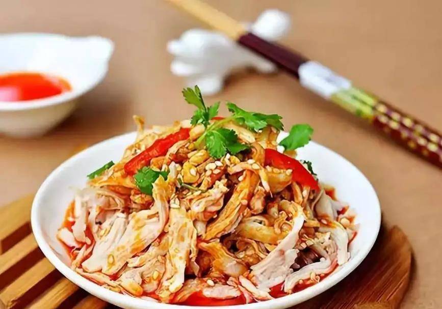 要想做出美味地道的棒棒鸡丝,最关键的就是在调味之前用木棒将鸡肉拍松,方便其入味,接着,再用双手把鸡肉撕成粗丝,最后再加以各种调味品,抓拌均匀入味即可。