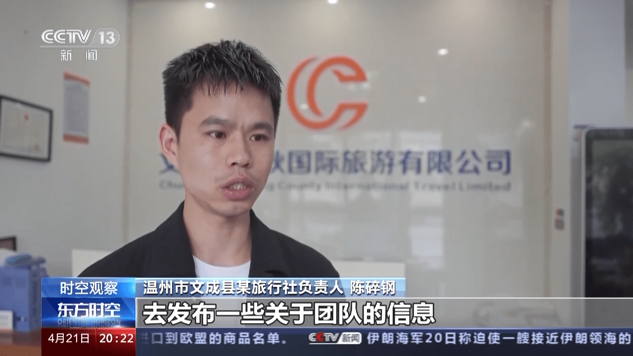 温州市文成县某旅行社负责人 陈碎钢:比如说会在朋友圈、微信群里面去发布一些关于团队的信息,需要多少名导游。